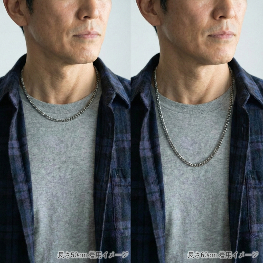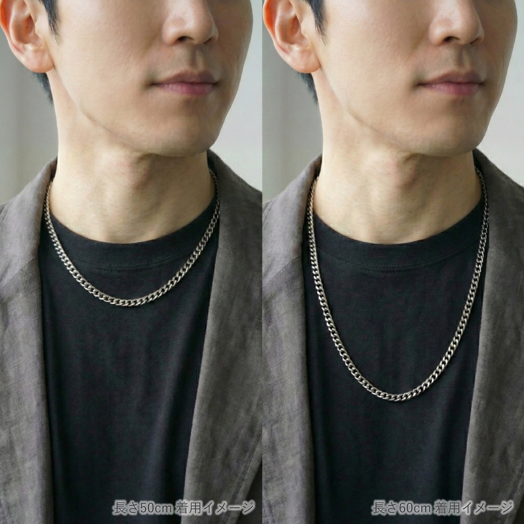 プラチナの1/5の重さの純チタン製なので、ボリュームがあるチェーンなのに、首回りへの負担が少ない、とっても軽いチェーンです。