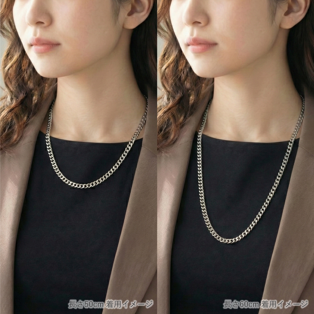 チェーン単体でも十分な存在感を放ち、胸元に華やかさと洗練された印象を与えてくれるアイテムです。