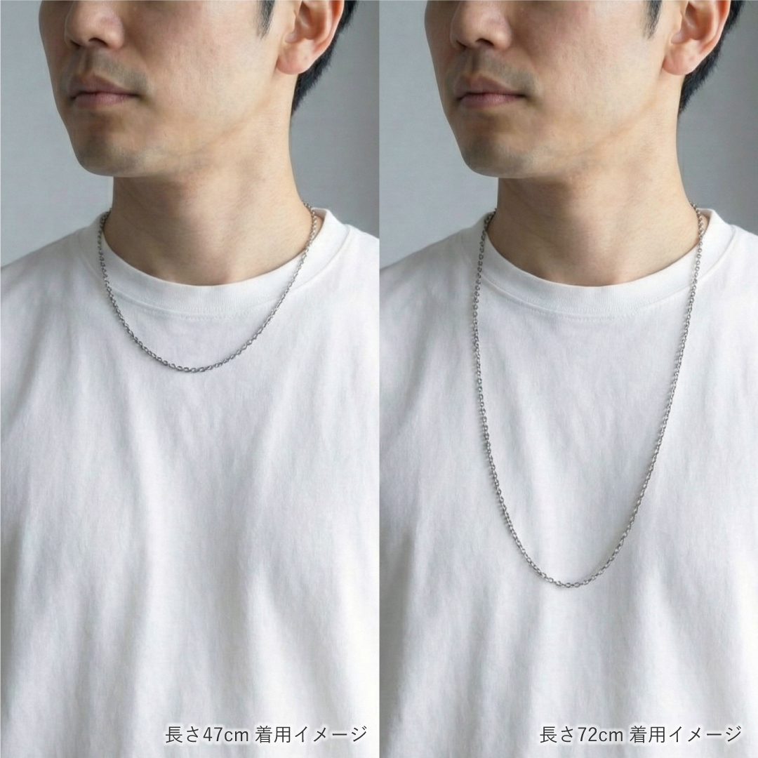 一般的なチタンチェーンで施されるIPコーティングではなく、職人による研磨加工のみで仕上げている無垢の純チタンチェーンです。純チタンだけで出来ているので、プラチナやステンレスが着けられない金属アレルギーの方も安心して着けていただけます。