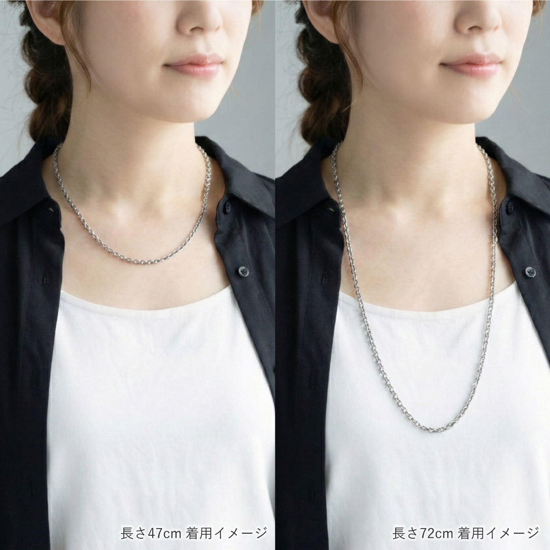 単体でも適度な存在感がありますが、細めのチェーンとの重ね付けしたり、カジュアルなデザインや少し大きめのペンダントトップなど組み合わせてお洒落を楽しみたい時にも活躍します。