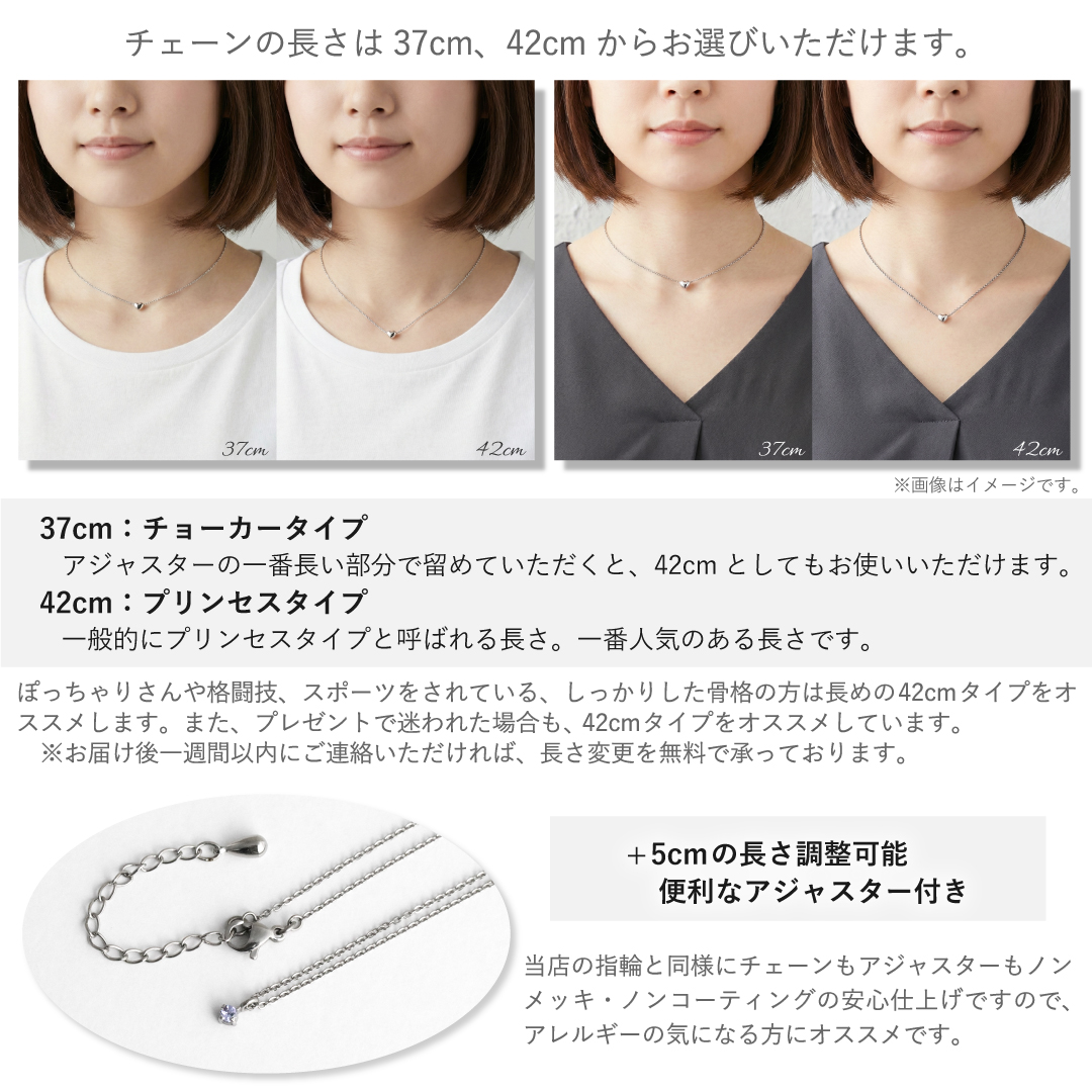 トップもチェーンも全て、金属アレルギーの心配がない「純チタンだけ」