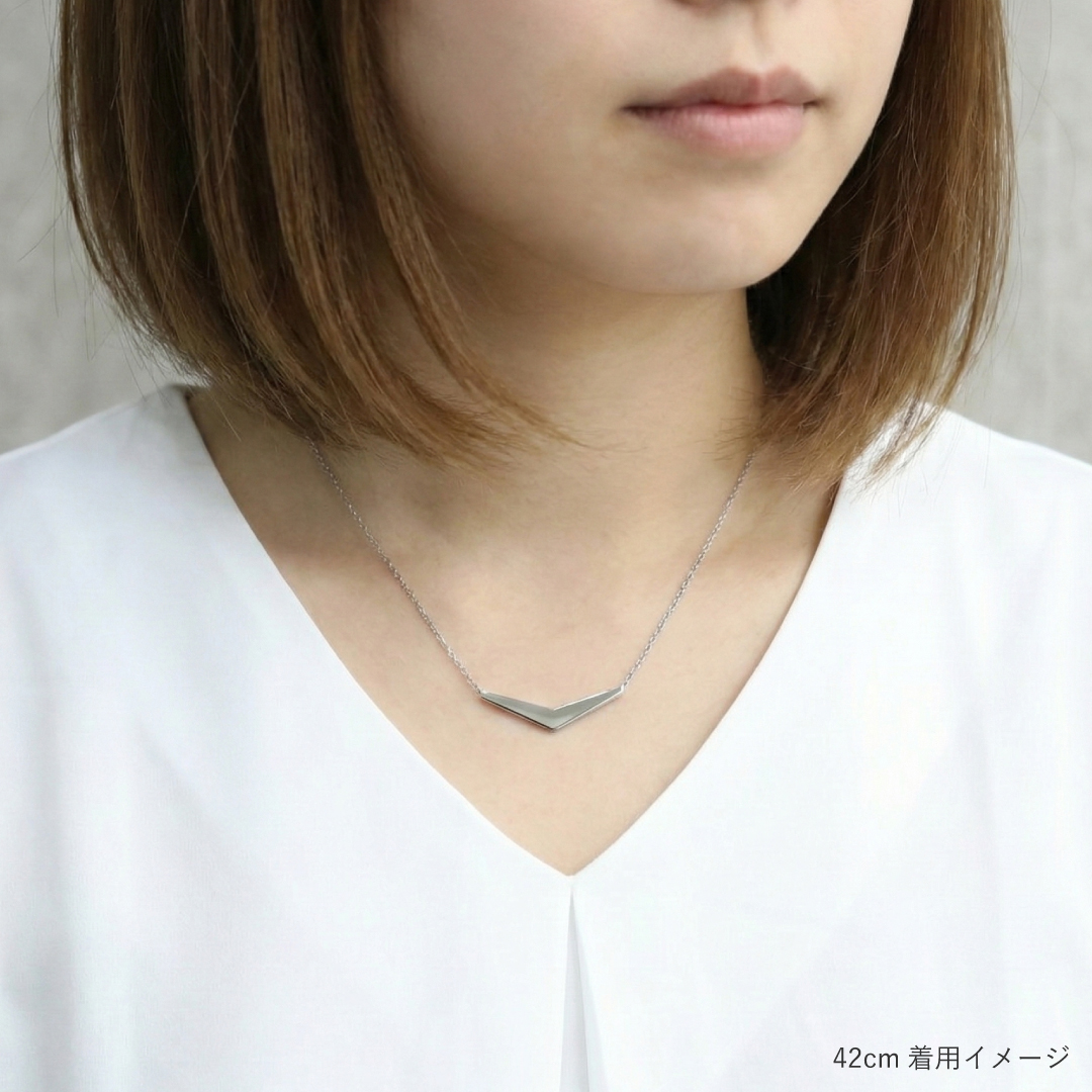 フェイスラインからデコルテをすっきり魅せてくれる、シンプルな地金のみのV字プレートのバーネックレス。