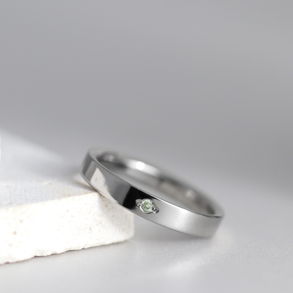 世代を超えて愛されてきた王道の平打リングにプラスワンポイントで誕生石をあしらいました。