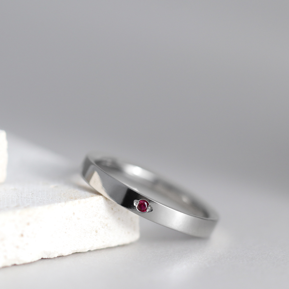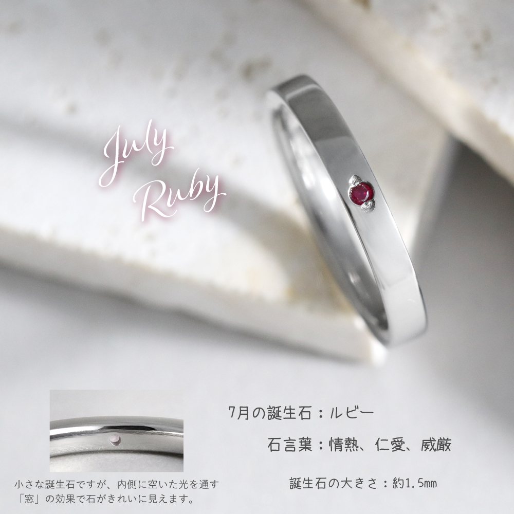 世代を超えて愛されてきた王道の平打リングにプラスワンポイントで誕生石をあしらいました。