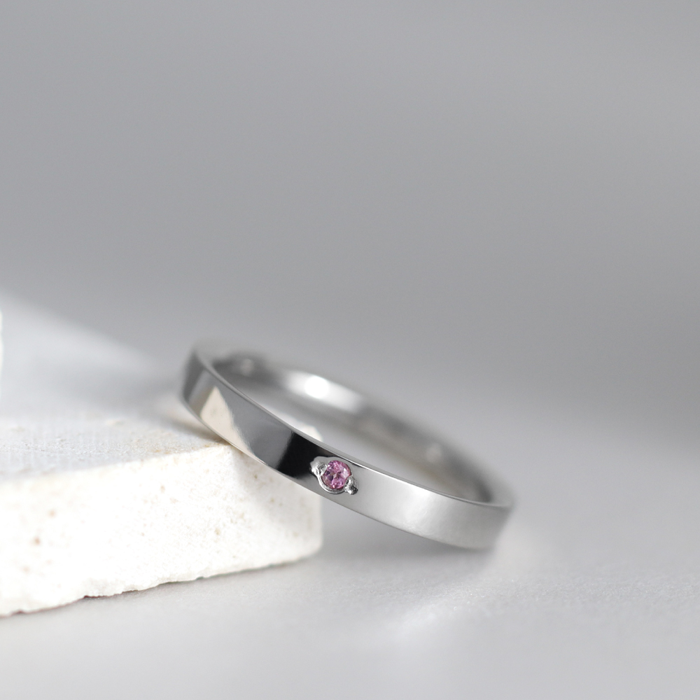 世代を超えて愛されてきた王道の平打リングにプラスワンポイントで誕生石をあしらいました。