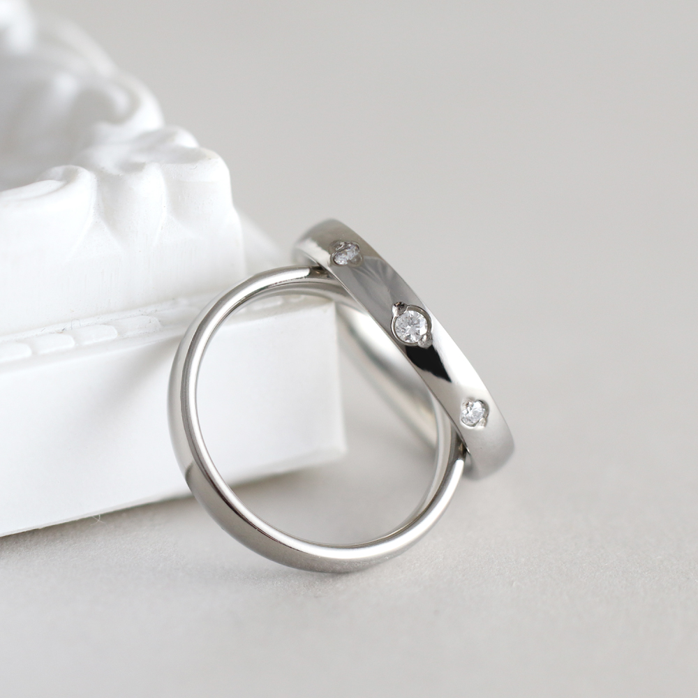 ダイヤモンド計0.07ct 純チタン甲丸トリロジーリング