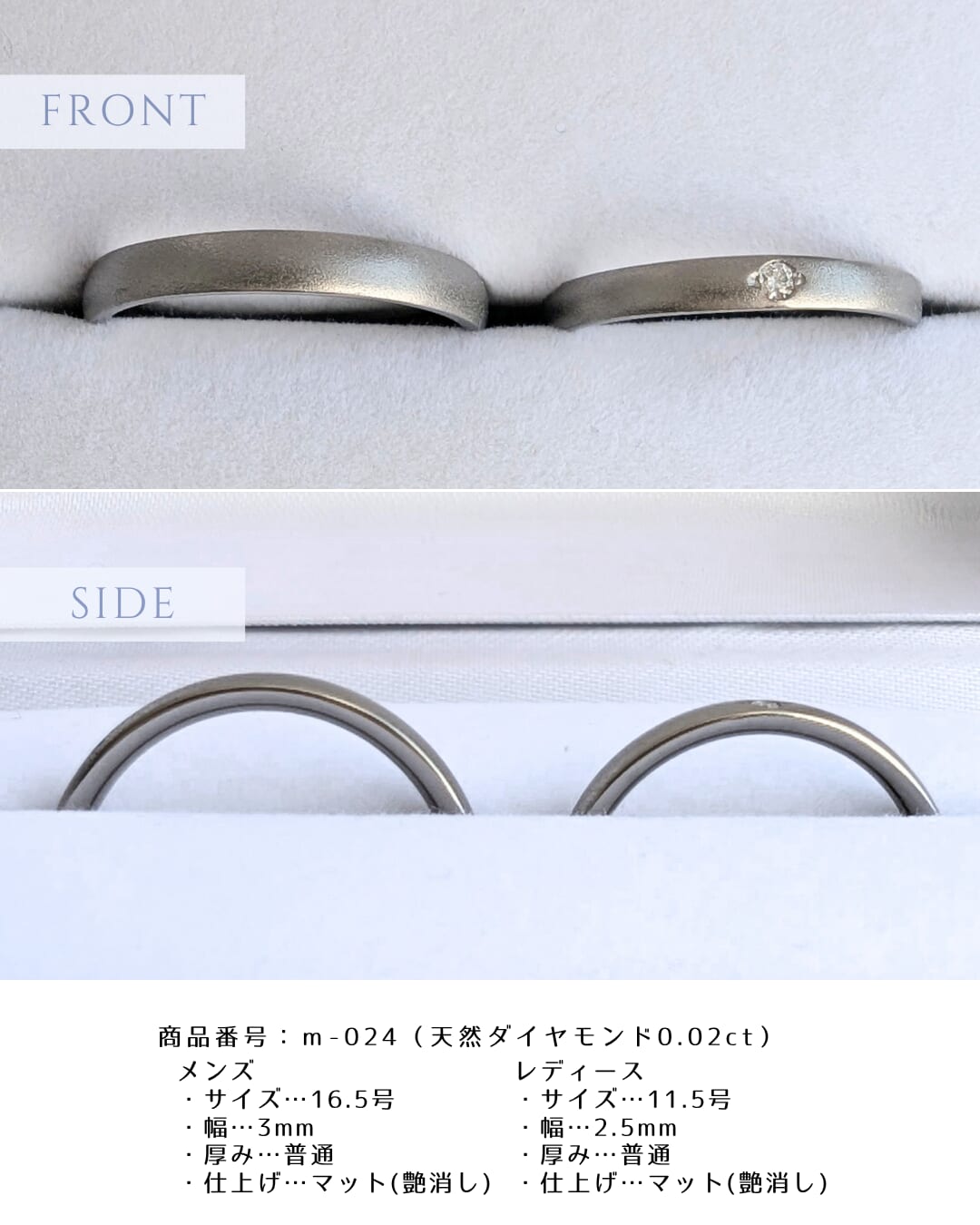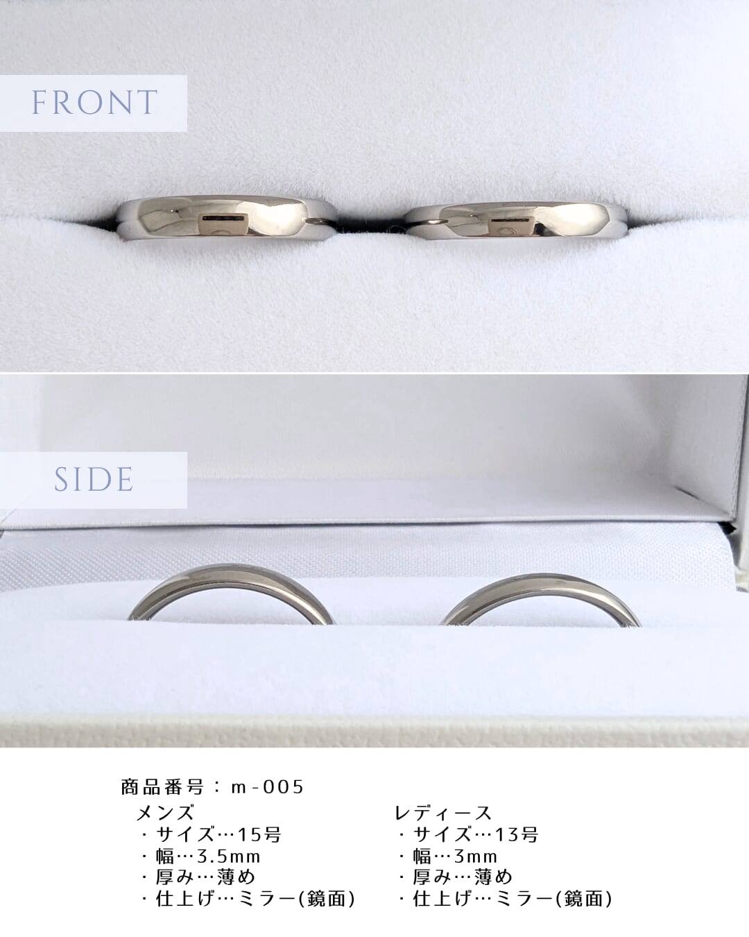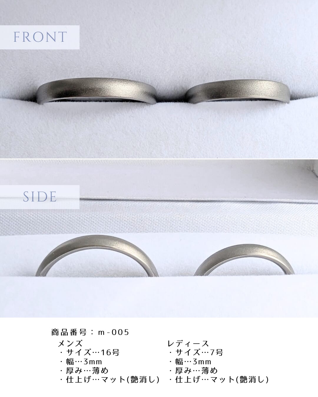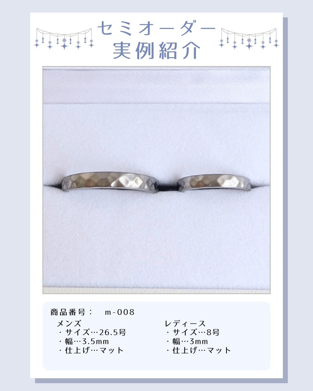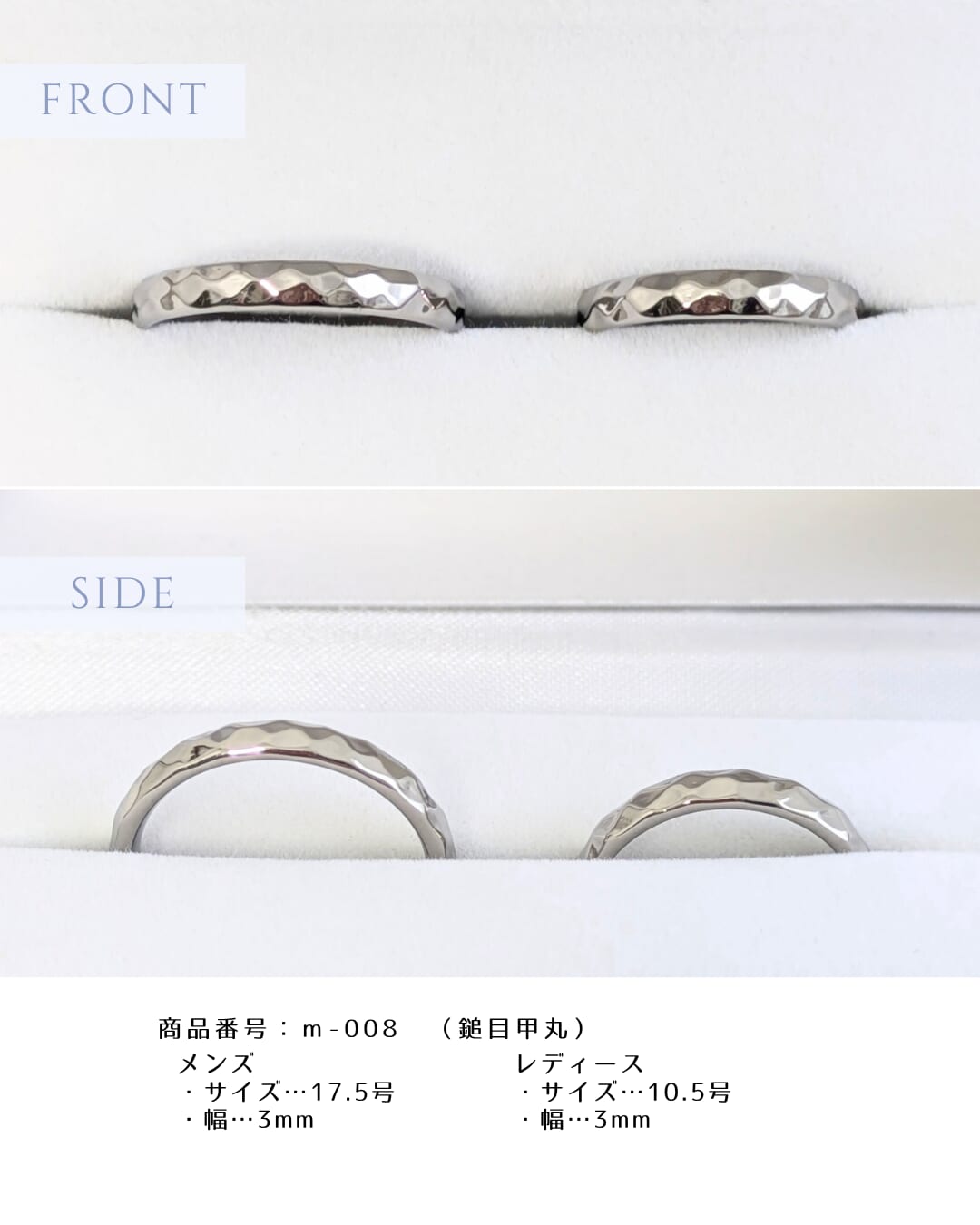 手仕事の風合い 鎚目模様 純チタン甲丸ペアリング