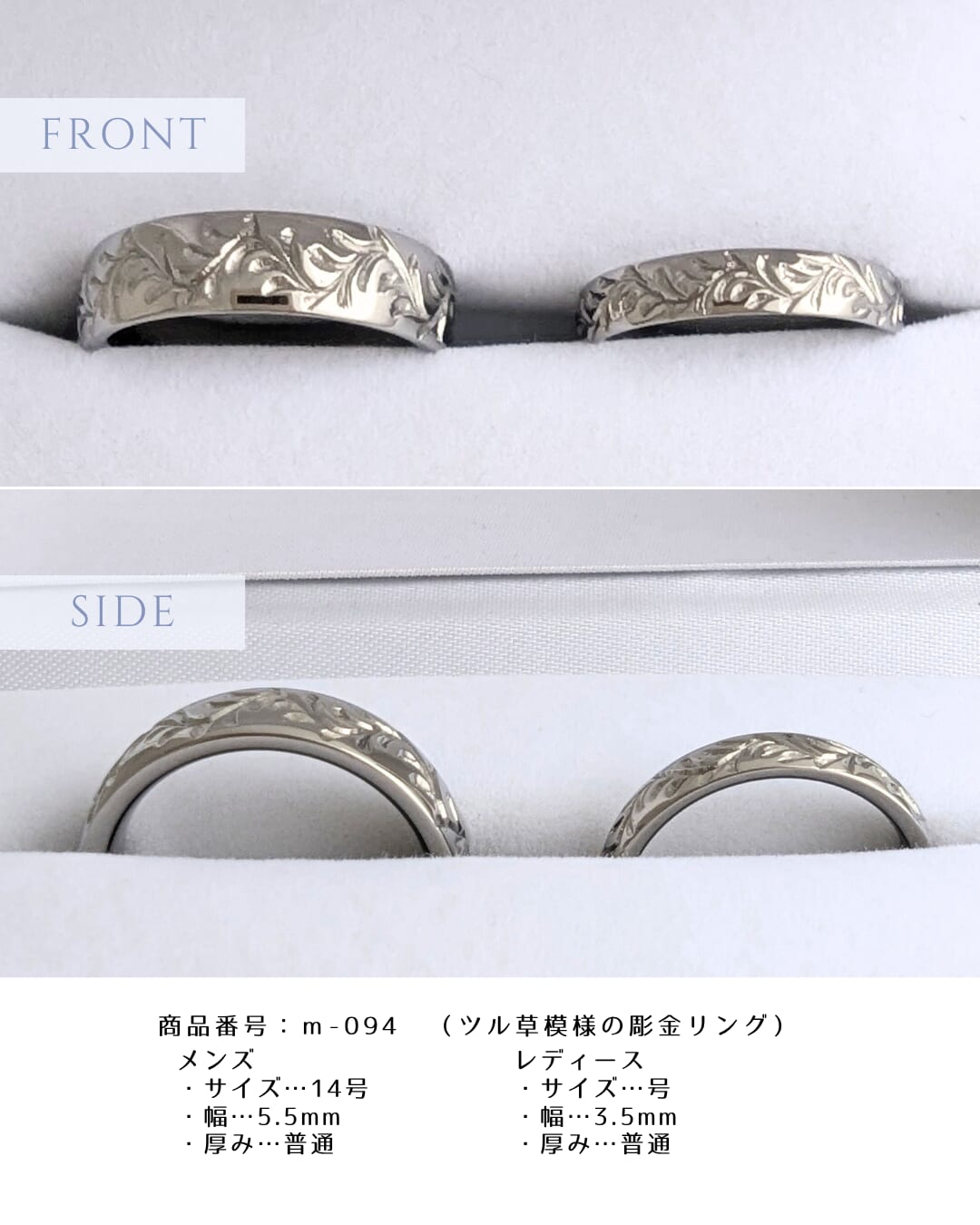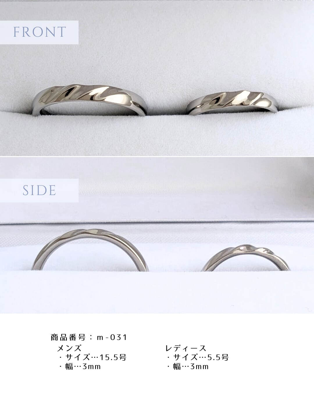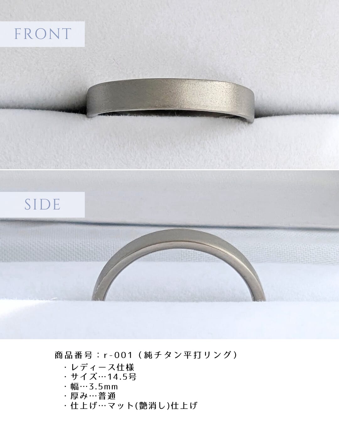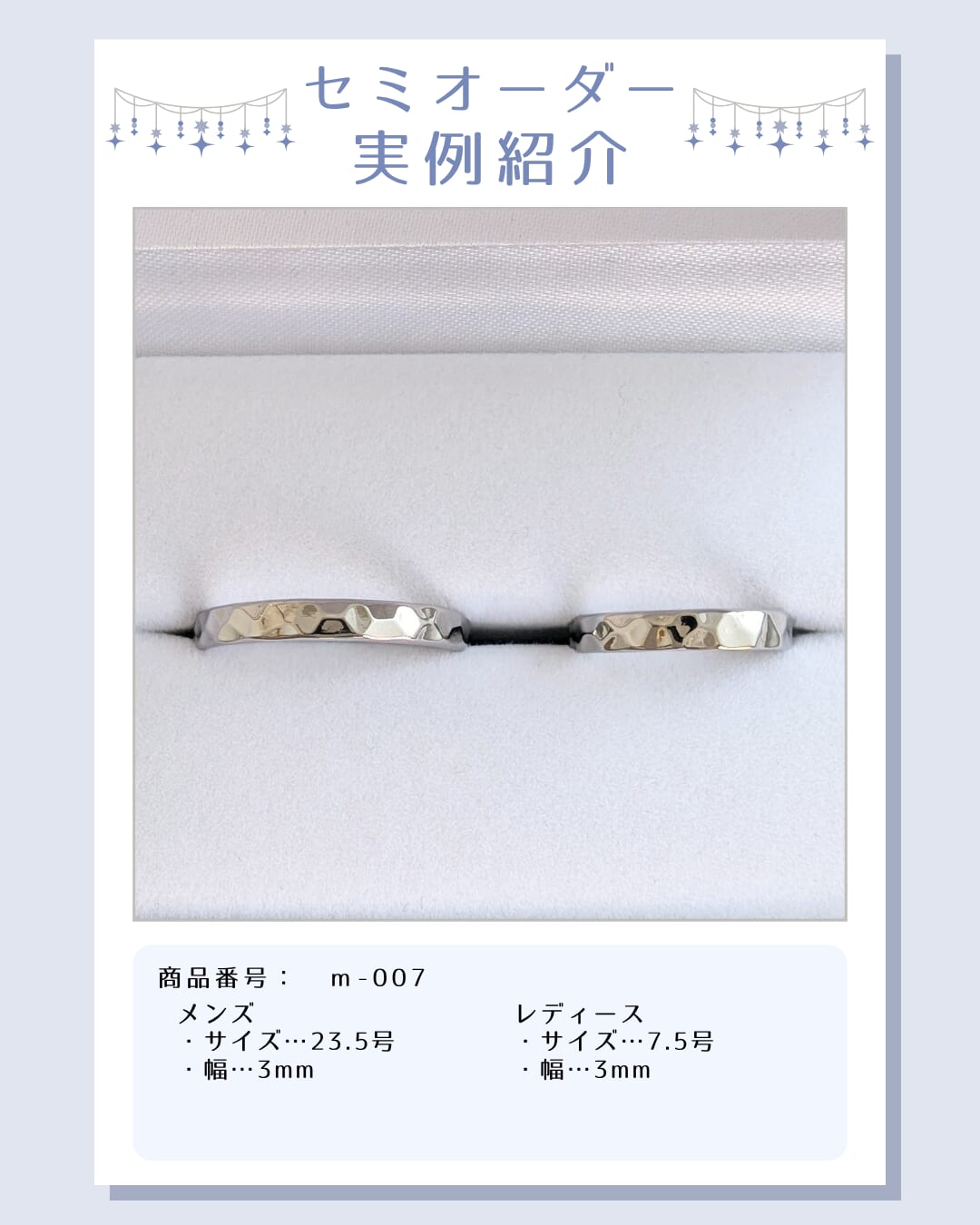手仕事の風合い 鎚目模様 純チタン甲丸ペアリング