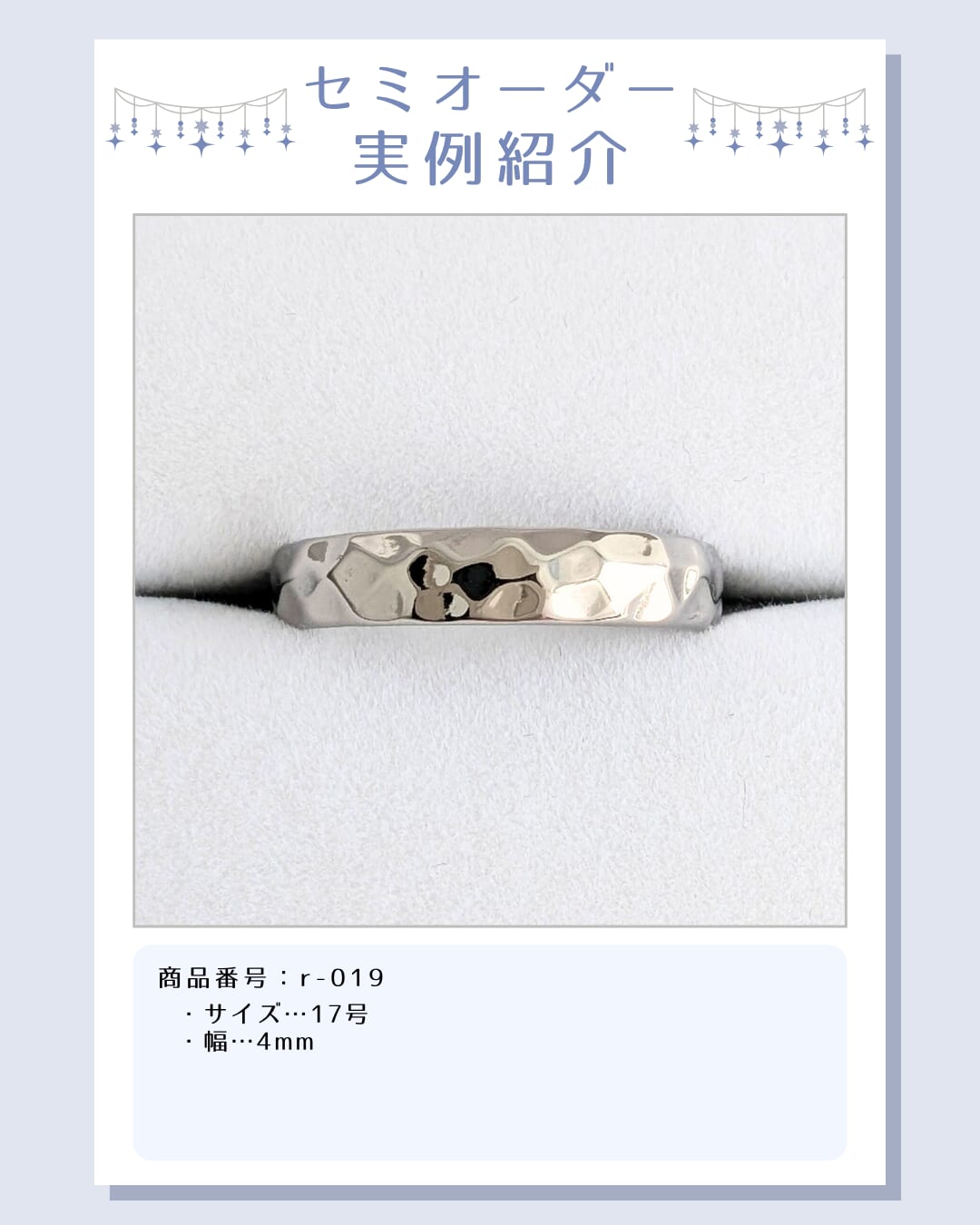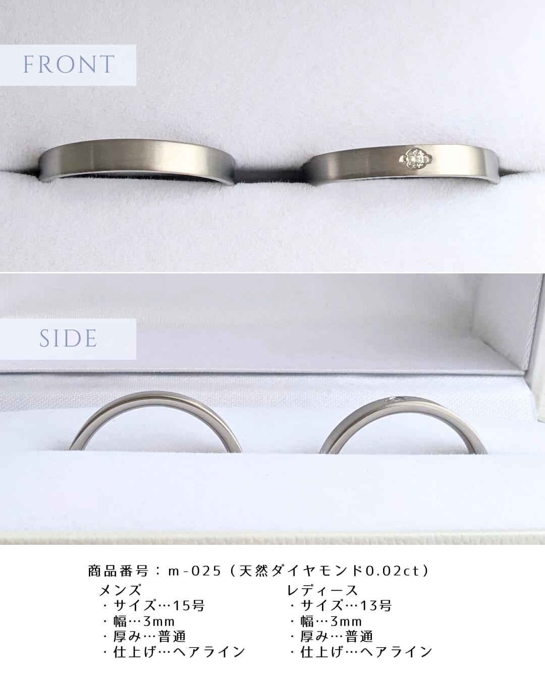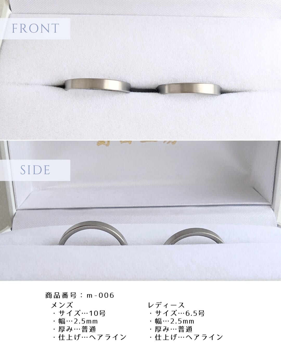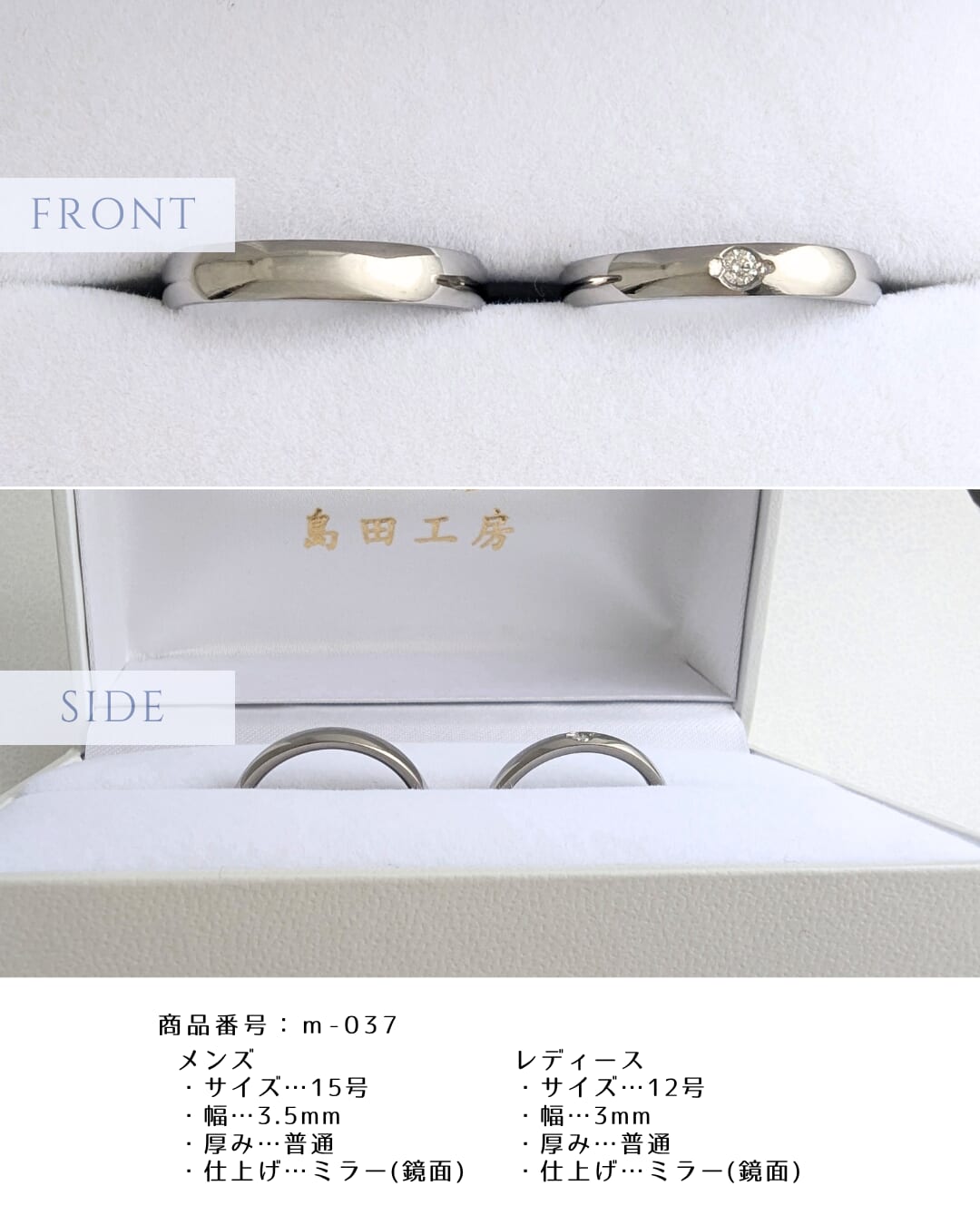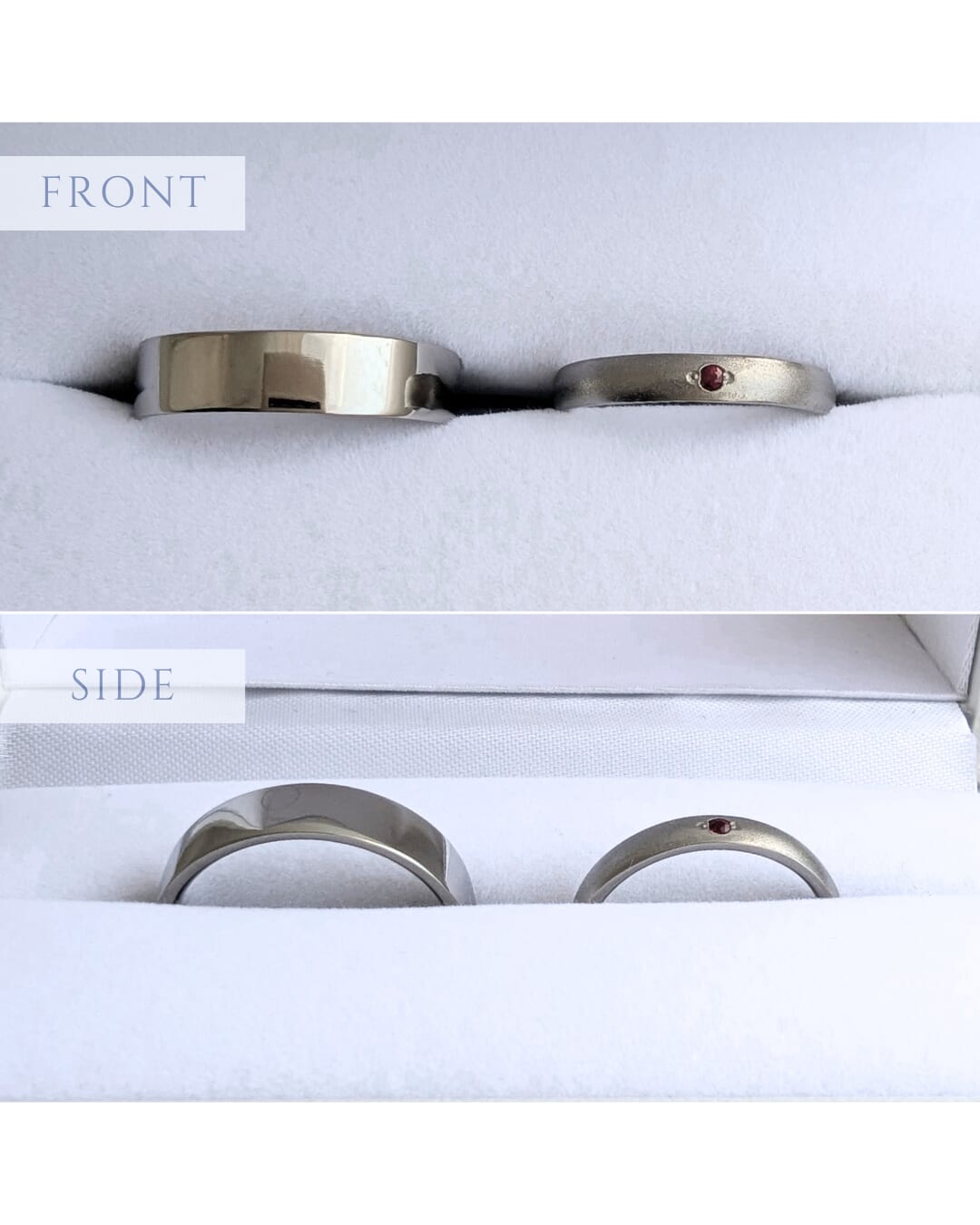 手仕事の風合い 鎚目模様 純チタン甲丸ペアリング