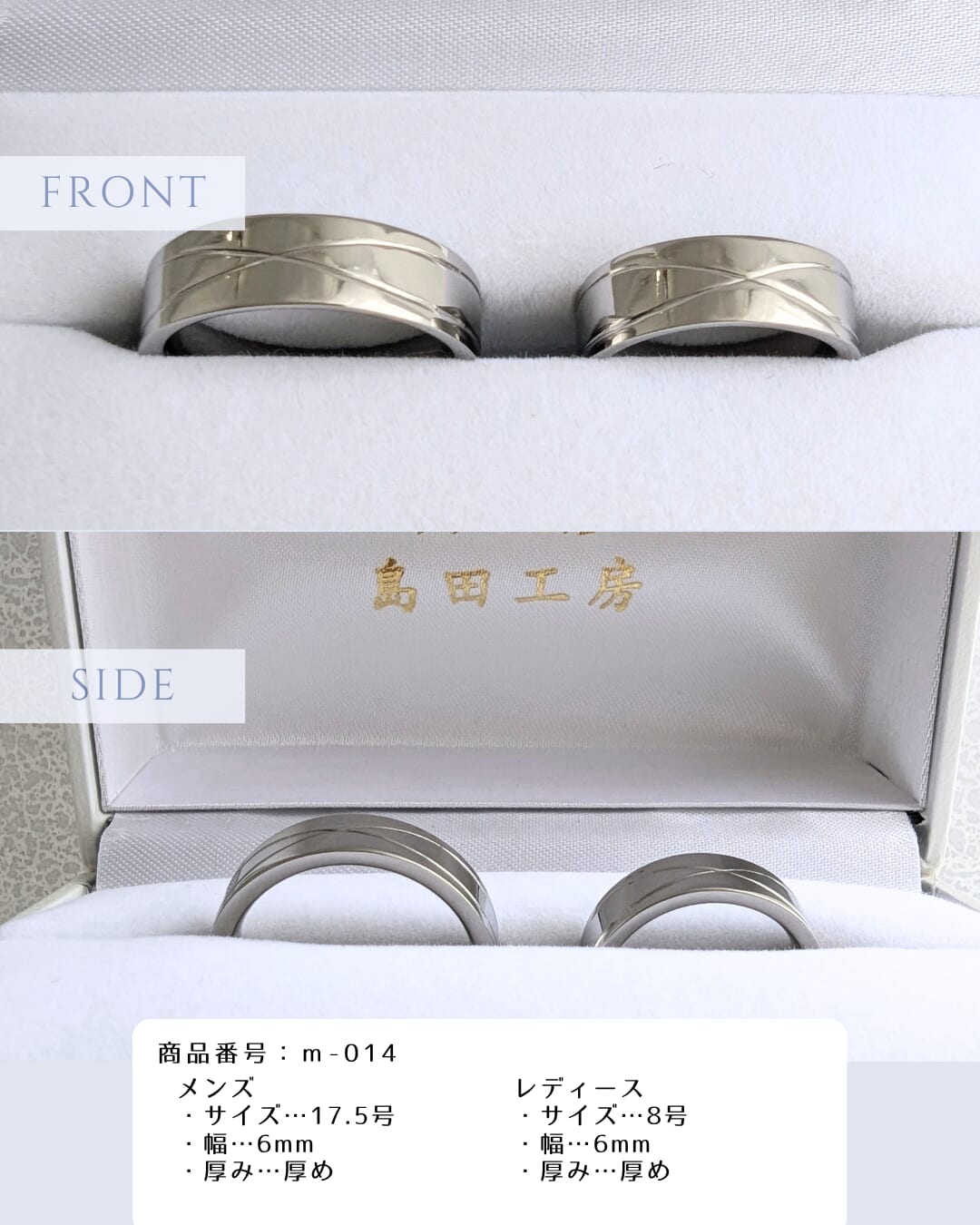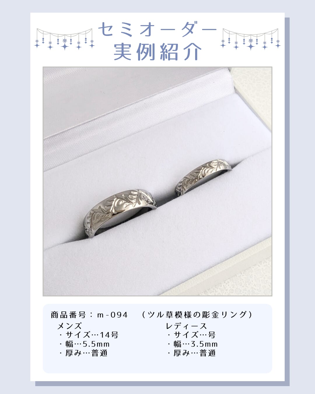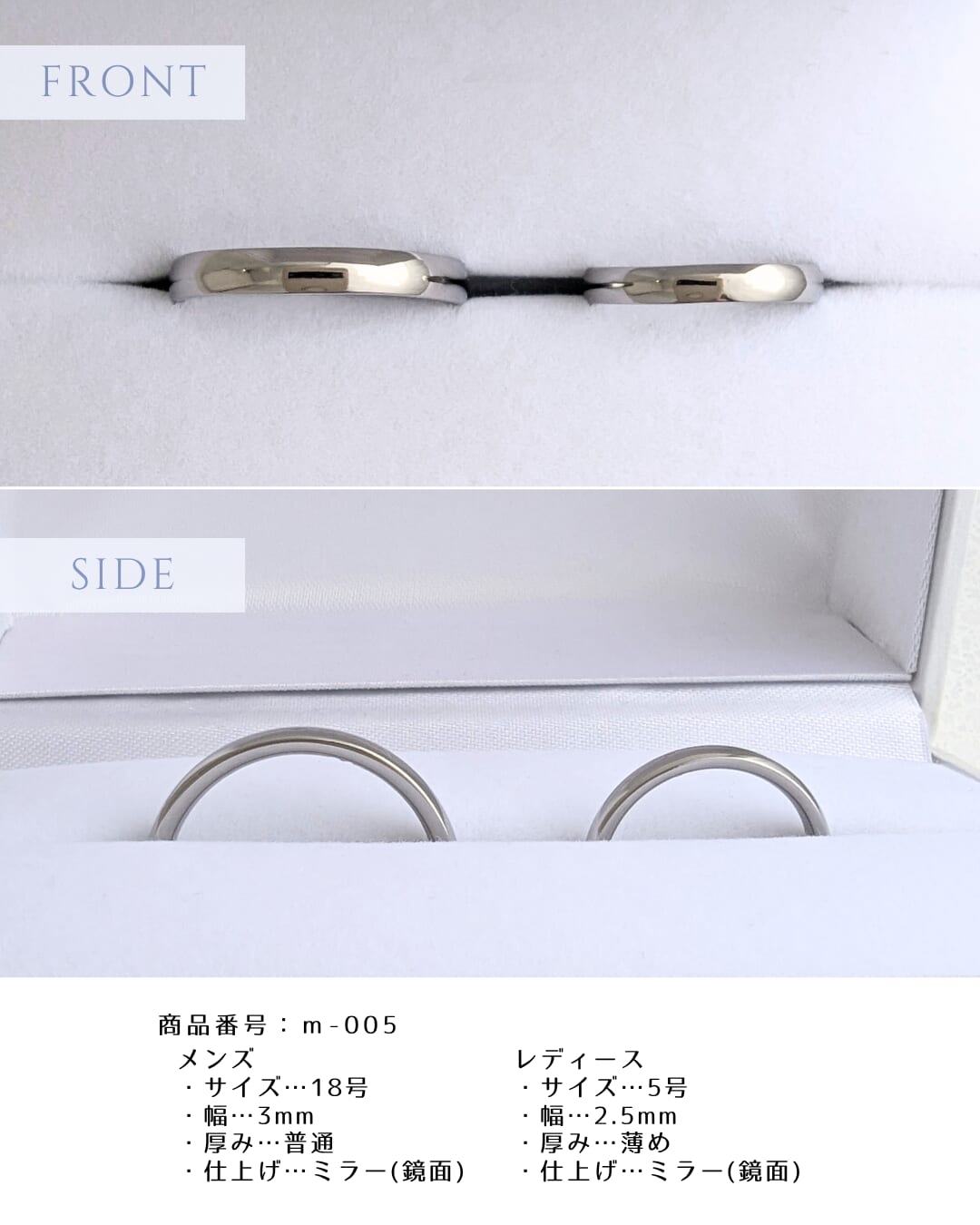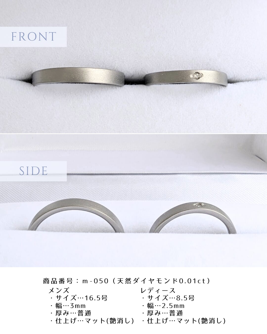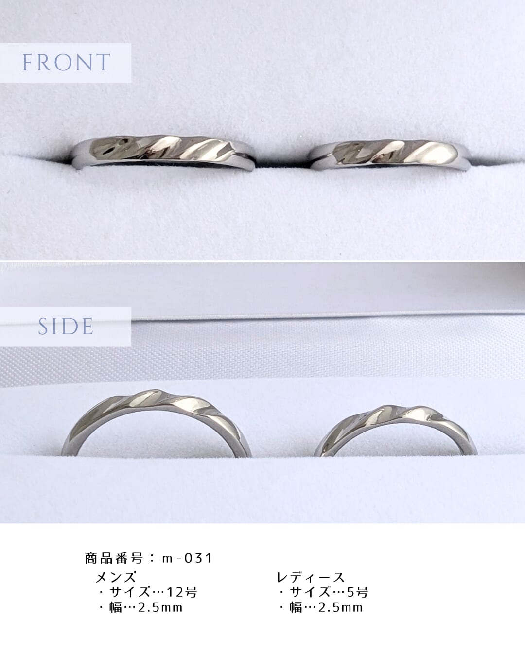 手仕事の風合い 鎚目模様 純チタン甲丸ペアリング