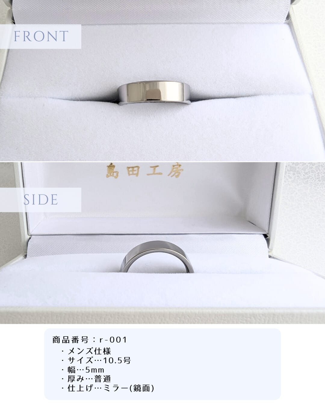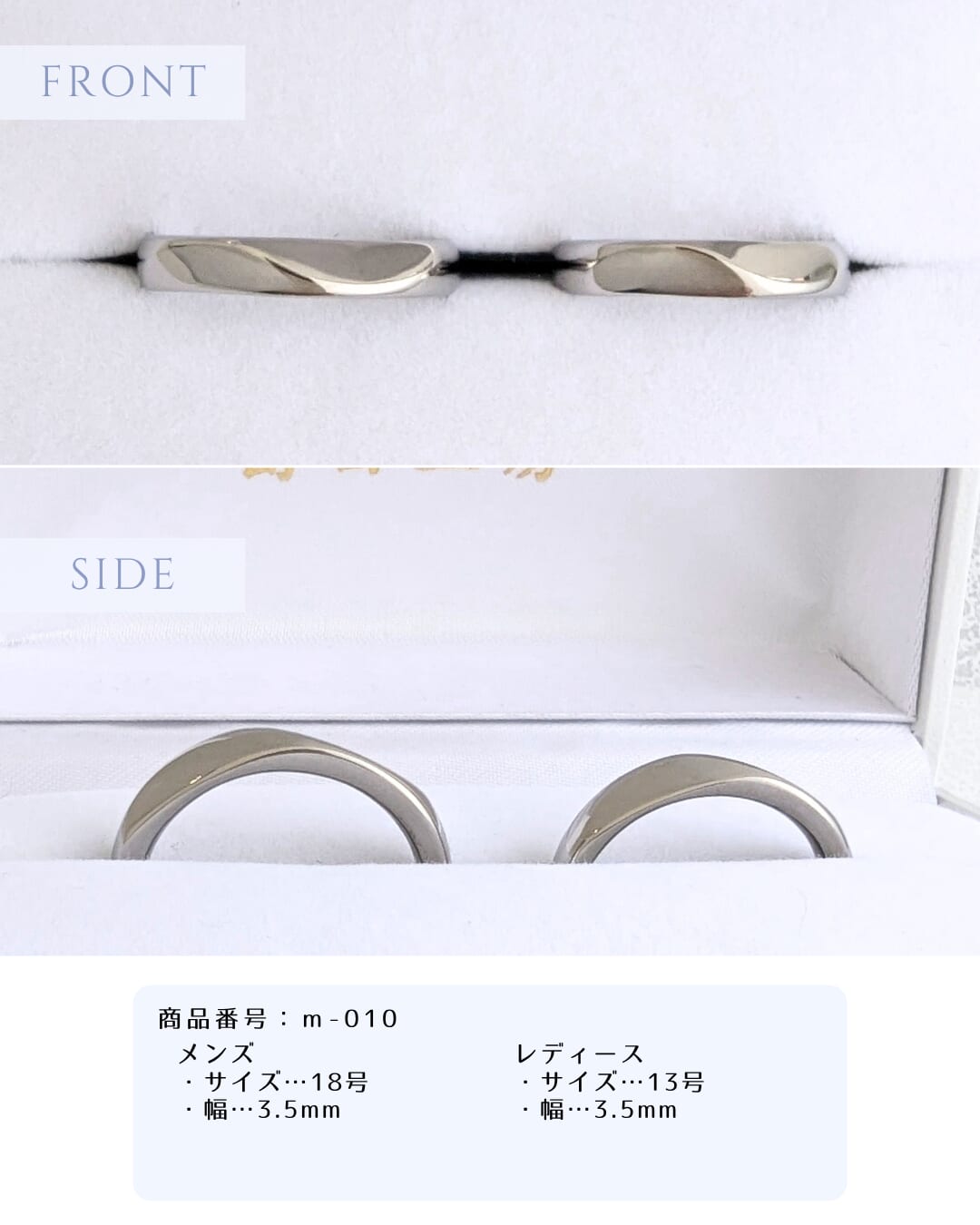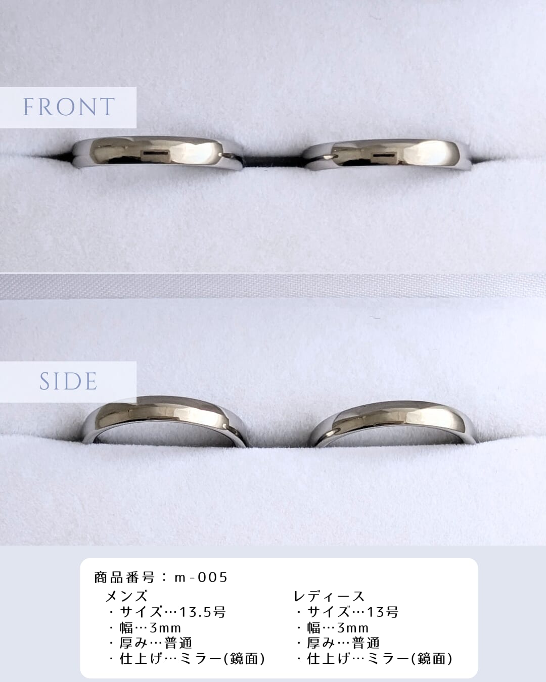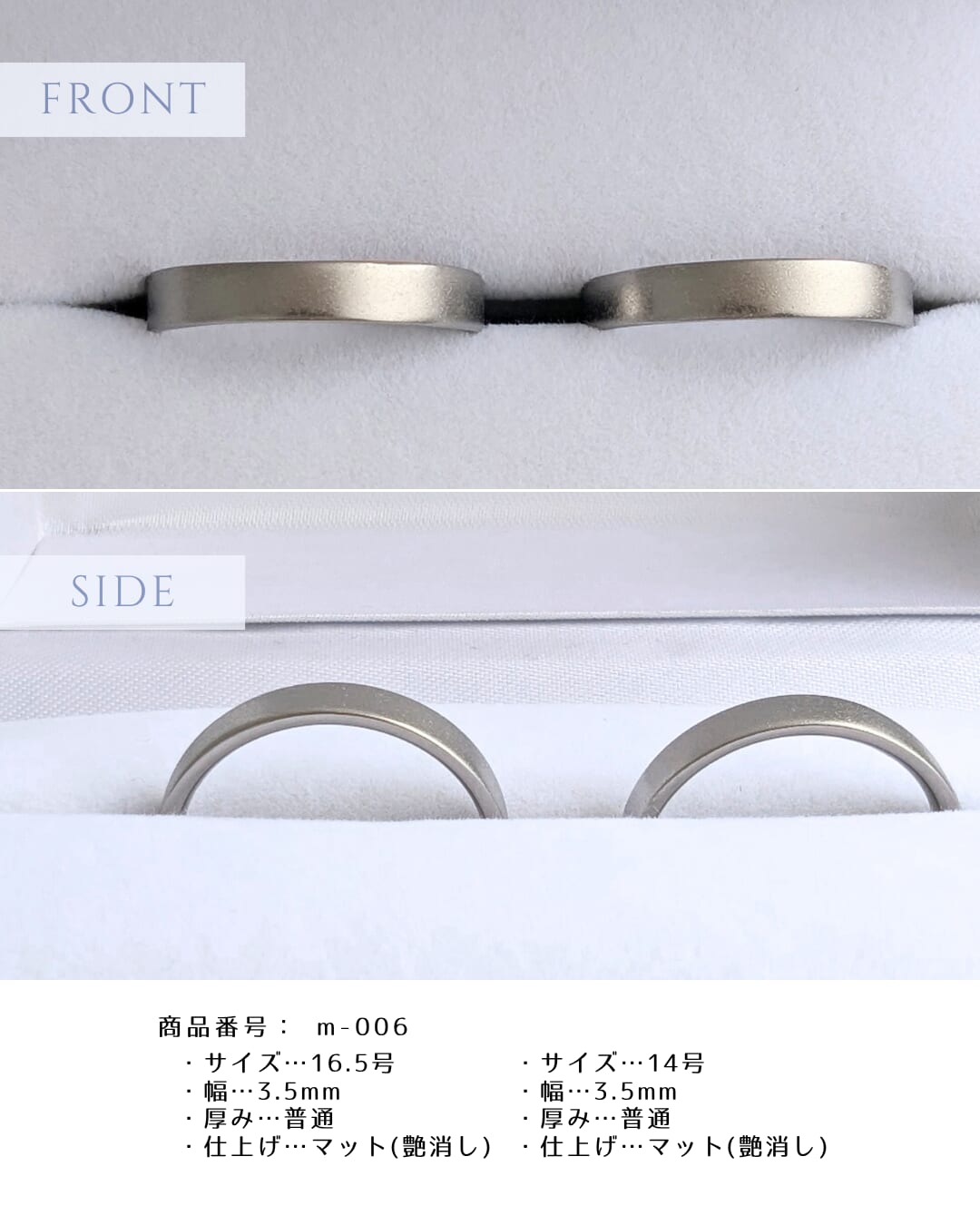 手仕事の風合い 鎚目模様 純チタン甲丸ペアリング