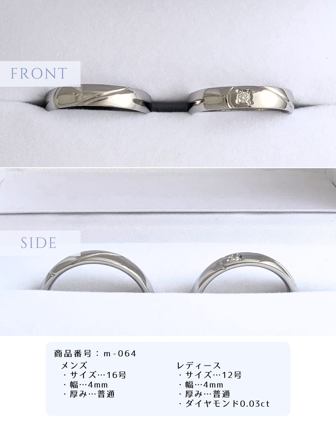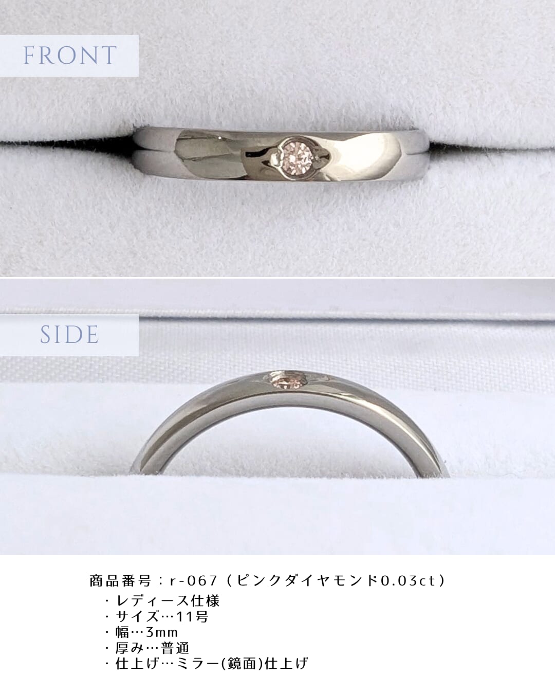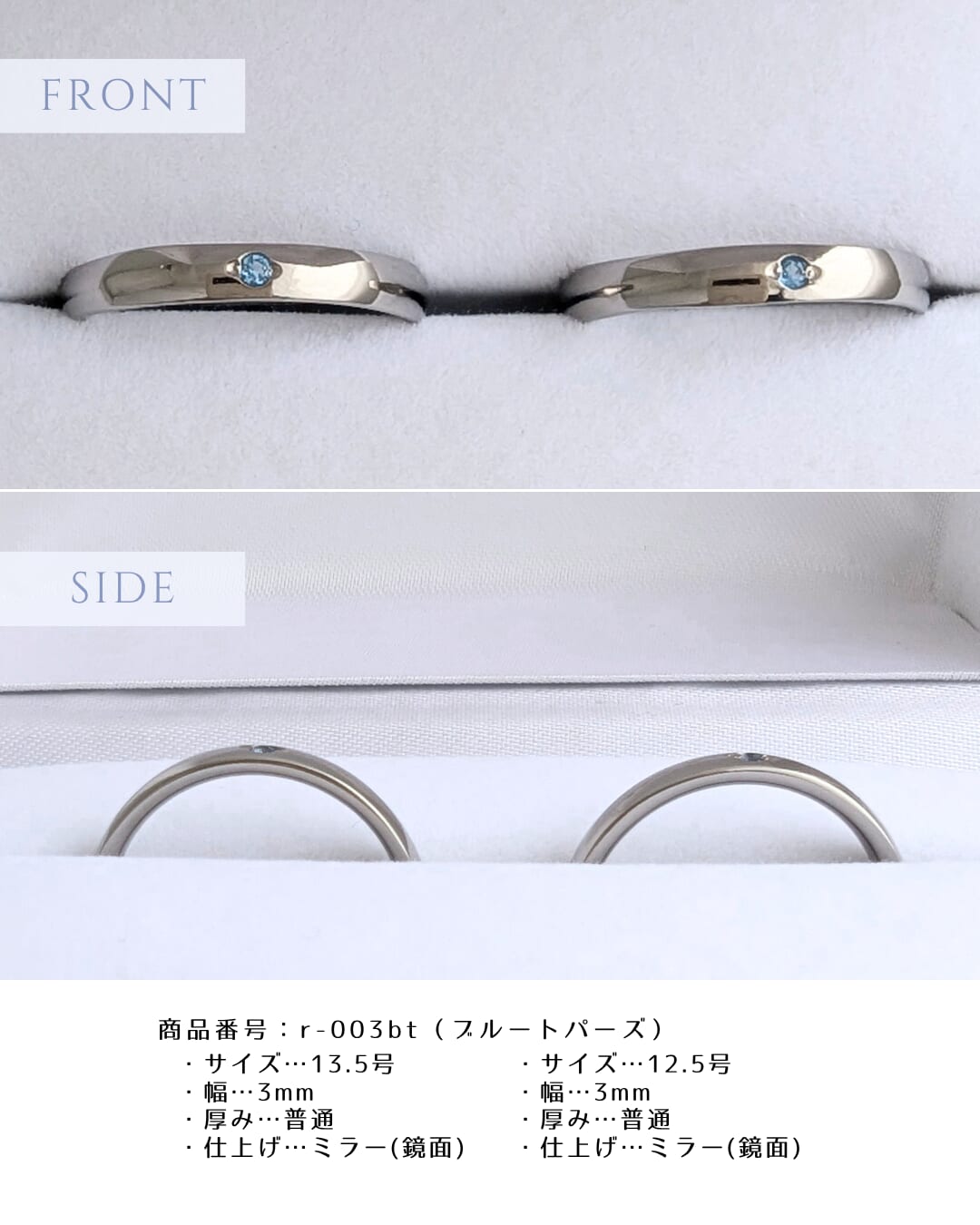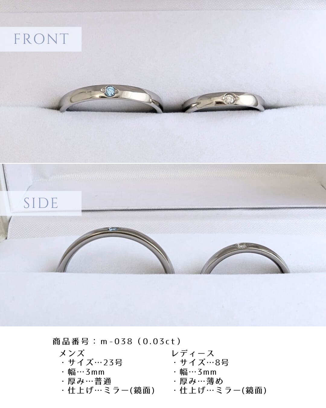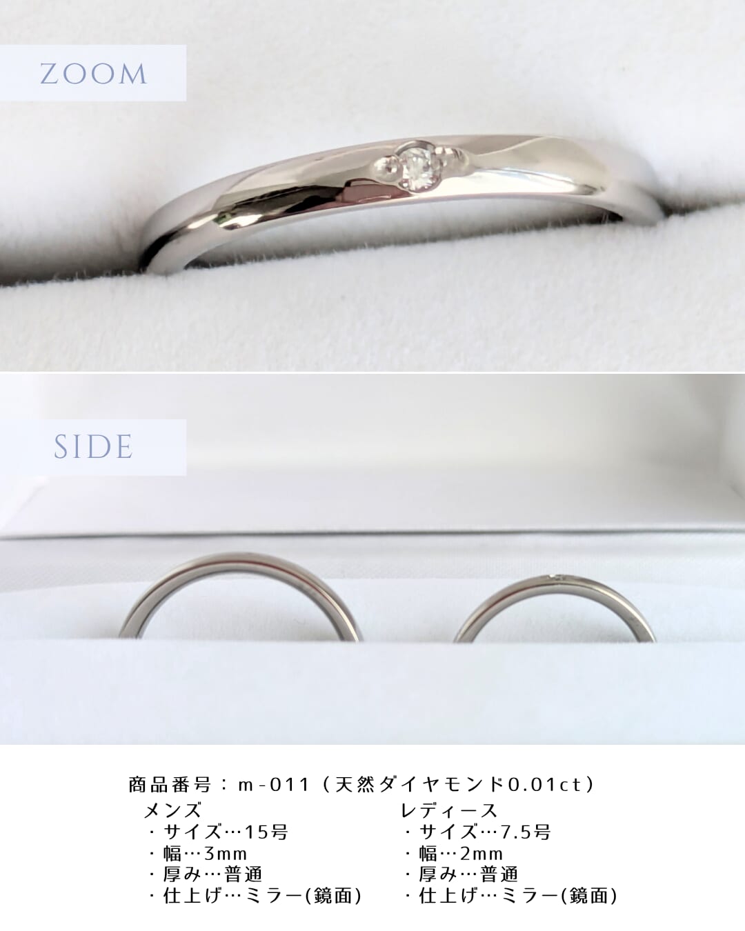 手仕事の風合い 鎚目模様 純チタン甲丸ペアリング