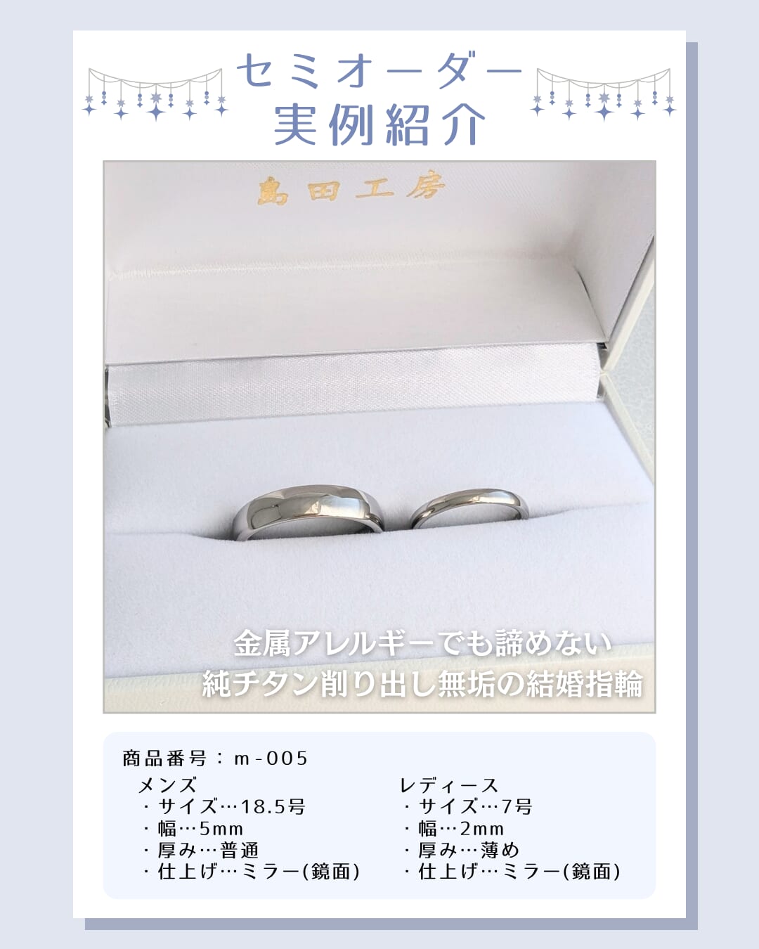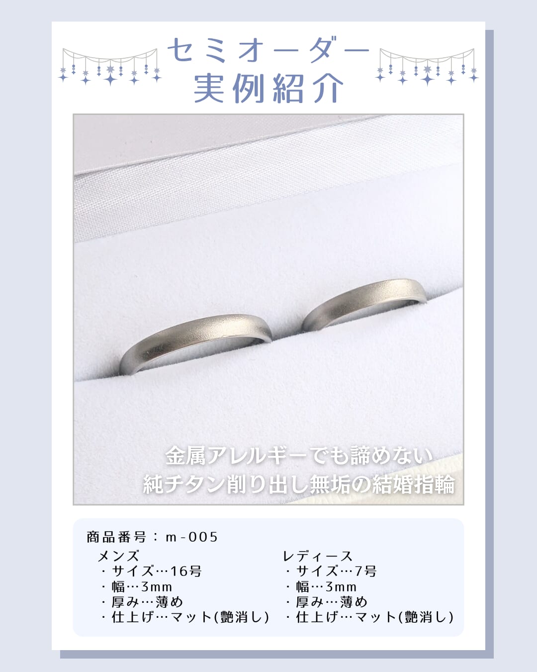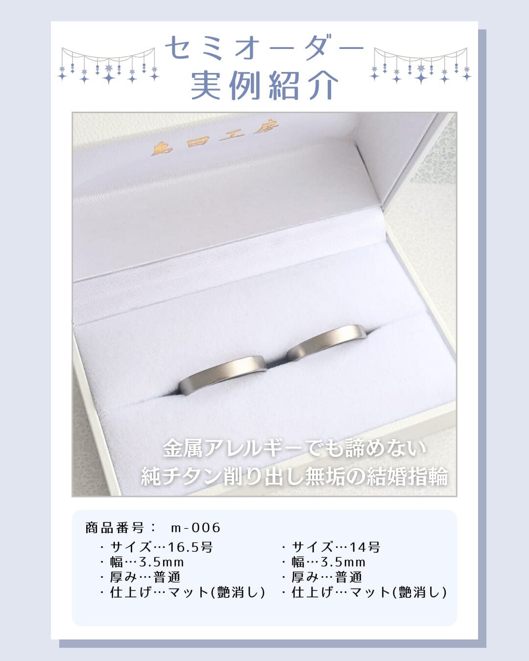 体内に入れられる素材で作る「削り出し無垢・研磨仕上げ」お客様の声から生まれた金属アレルギー対応のセミオーダー結婚指輪💍ご注文に合わせて製作する完全受注製作のハンドメイド純チタンリング✨2001年ショップOPEN📍新潟県弥彦村の小さな工房🏠 から安心と輝きをお届けします✨ 製作実例はこちら👇