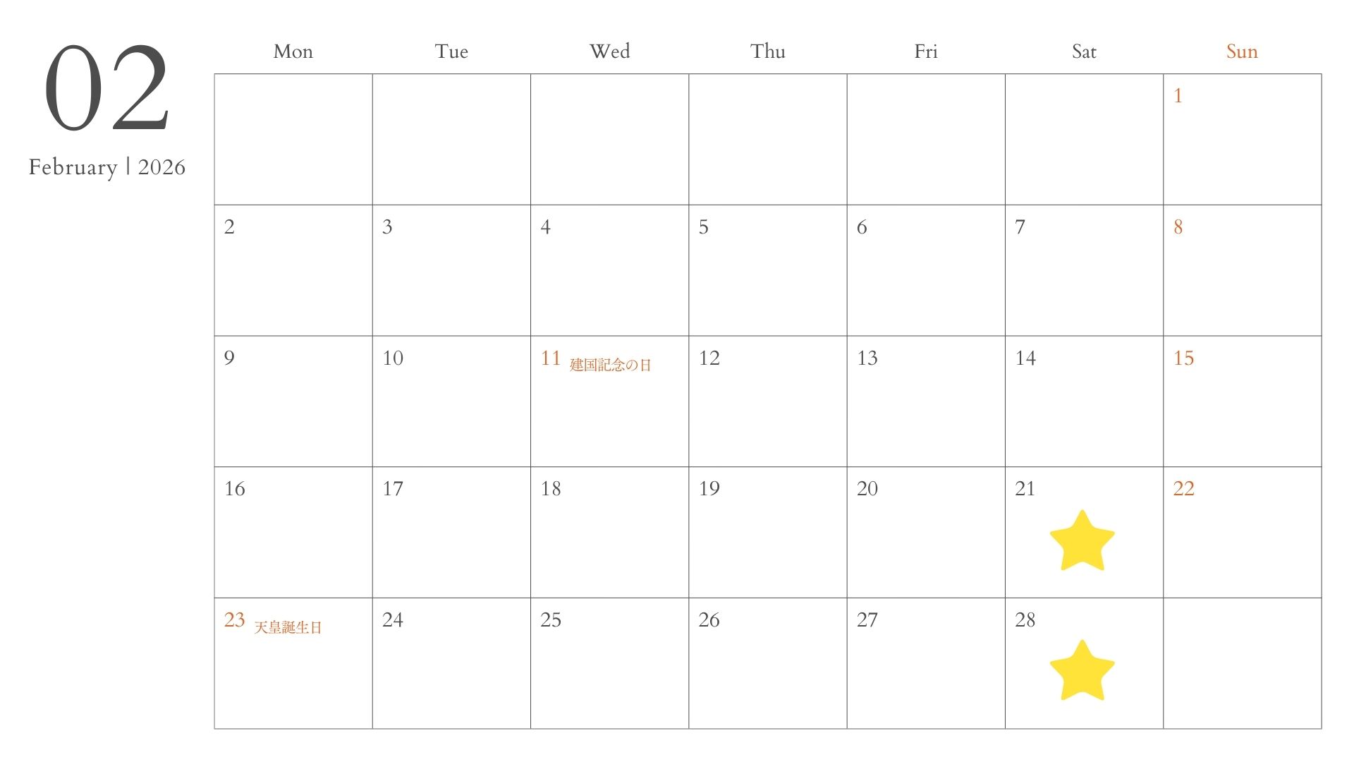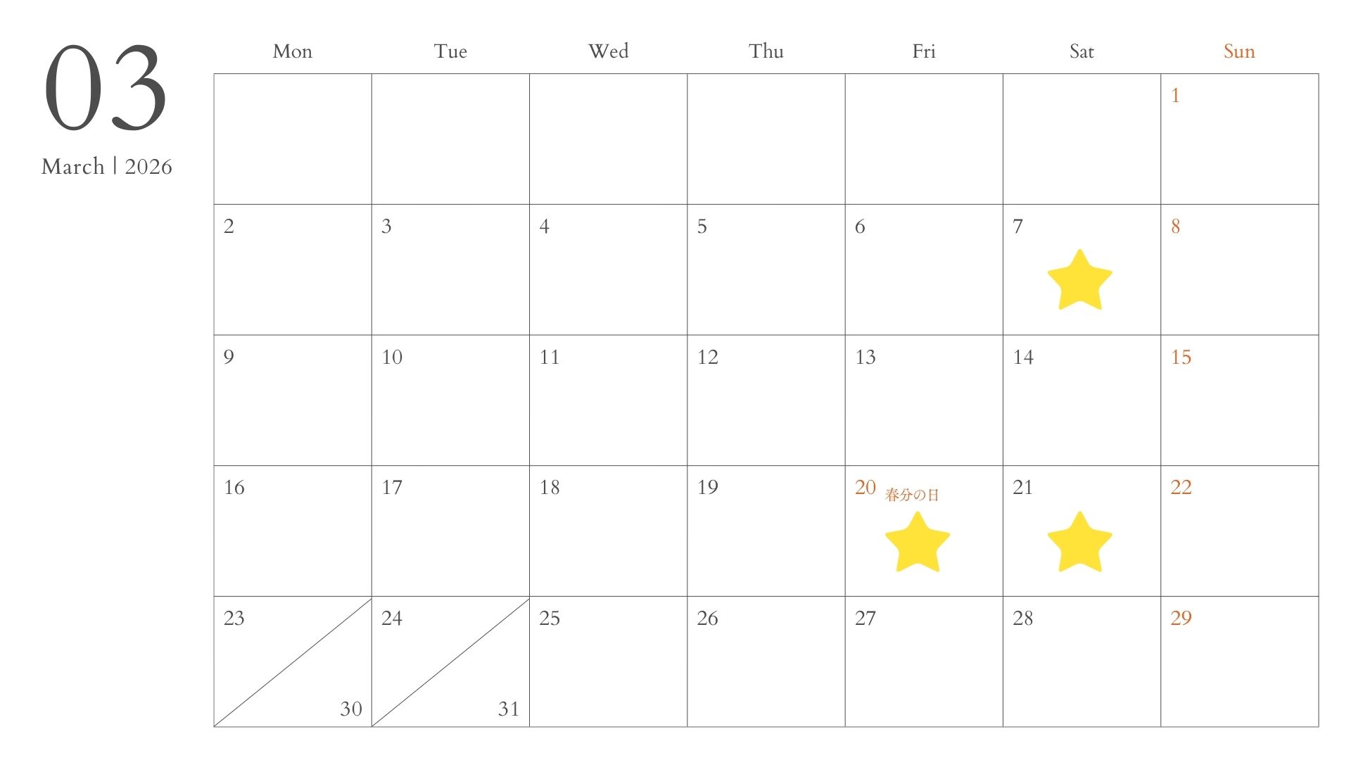 2025年 12月 2026年 1月は、下記の予定でショールームを営業いたします。