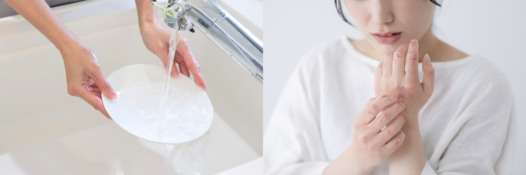 刻印の凹凸内に洗剤やシャンプーなどが残りやすく、カブレなど肌トラブル・アレルギー発症の原因になります。